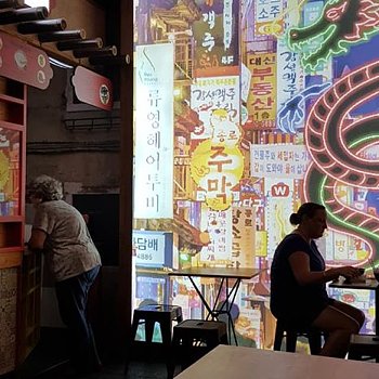 It’s a community place, capturing the atmosphere of a Chinatown dining area.