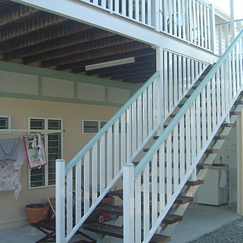 The construction costs were constrained to a budget, and the upper and lower floors would be separately tenanted. Each tenant was to have garden area with exclusive use and the additions were to include a double carport. The upstairs unit has exclusive use of the open space rear yard area. The ground floor unit has exclusive use to the open space areas to the sides of the building and an enclosed front courtyard area.