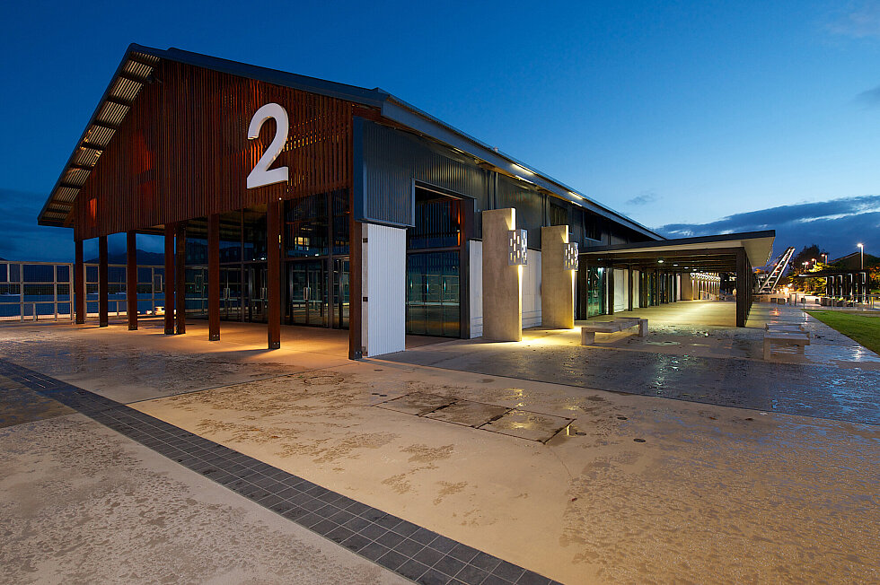 The foreshore development included the repair of a historic wharf shed and wharf spaces that link the Central Business District of Cairns to the waterfront and the Cairns Cruise Terminal, an earlier conservation project. The project entailed the adaptive reuse of an historic wharf shed as a multifunctional commercial space. The concept for the wharf apron is based upon engaging multiple historic port remnants into a series of experiences that convey a story of the place’s evolution over time. These experiences are enriched by insertions conceived as follies that act as landscape markers and as diverse social spaces.