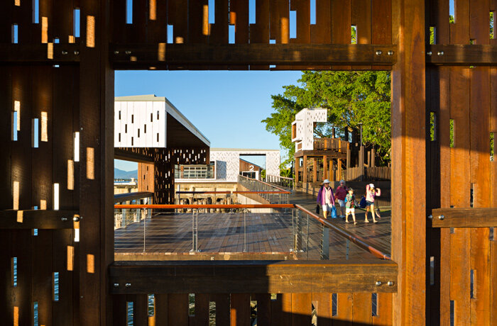 The project is a key element of the Cairns Cityport Masterplan which has transformed the waterfront into an urban public realm. The client prioritised the conservation of the wharf’s historic sheds and artefacts as well as the creation of waterfront public space. The design sought to fulfil these aspirations by engaging multiple historic elements with a language of new social follies that are fabricated from salvaged timbers. These are designed to create portals to particular places of historic and environmental interest.