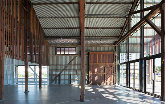 For the heritage sheds, existing passive systems for energy control have been amplified. The building is primarily naturally ventilated with cross flow ventilation maximised. The existing tin roof has been retained as an interior lining with a new roof and insulation constructed over to minimise heat gain. Industrial fans are embedded into the roof space at the truss line providing vertical air movement.