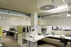 Separate metering for functional areas allowed the monitoring of energy consumption. The lighting layouts were designed for individual user control. New suspended high efficiency lighting was installed to ceilings and work stations to conform to Green Star levels of illumination, and lights and motorised blinds were connected to the building’s new C-Bus system. Lighting has been designed in small zones to reduce energy use during out-of-hours’ work and clearly labelled and accessible switches allow for easy control. Of particular note is the air conditioning system used in the building. It is a 5 star NABERS energy efficiency Variable Refrigerant Volume (VRV) air-conditioning system which optimizes energy usage.