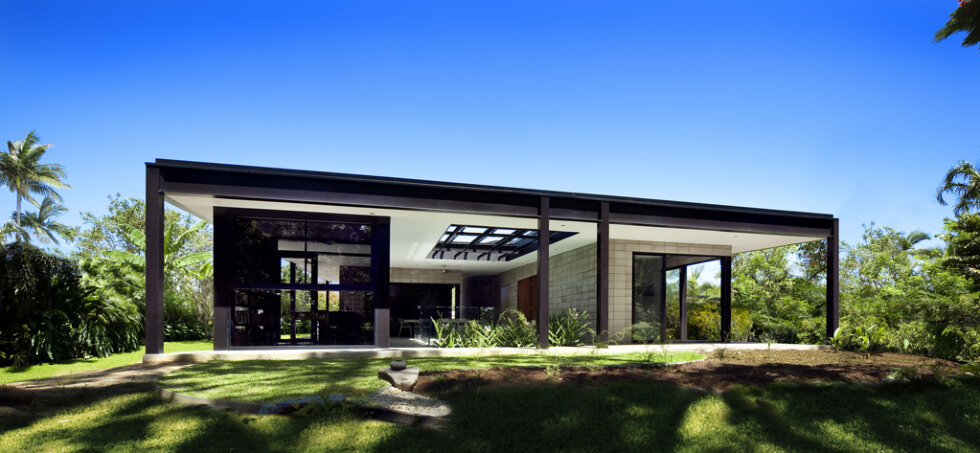 In contrast to the typical condensed street frontage, the home was setback deep into the block, providing for an expansive front garden and rear outlook onto a freshwater creek. This provided an opportunity to successfully re-present an iconic modernist pavilion within a wet tropical setting, visible from the street as a distinct alternative and new suburban typology.