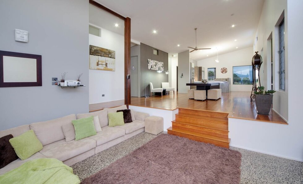 The main sustainable features are the efficient design, layout and orientation. The home also has high ceilings throughout to allow hot air to rise away from lower living spaces. Vents have been placed in the bedroom walls to allow a full cross flow of breeze.