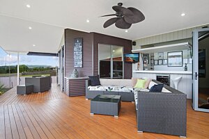 The deck is at the front of the house for the views although it is protected from the predominant South Easterly cold, drizzly Atherton Tableland winters.